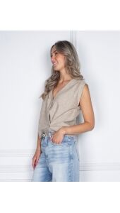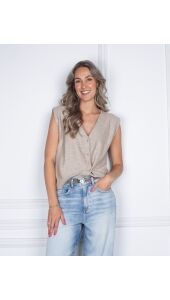 GEBREID GILET MET ASYMMETRISCHE SLUITING BEIGE