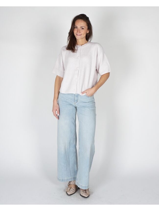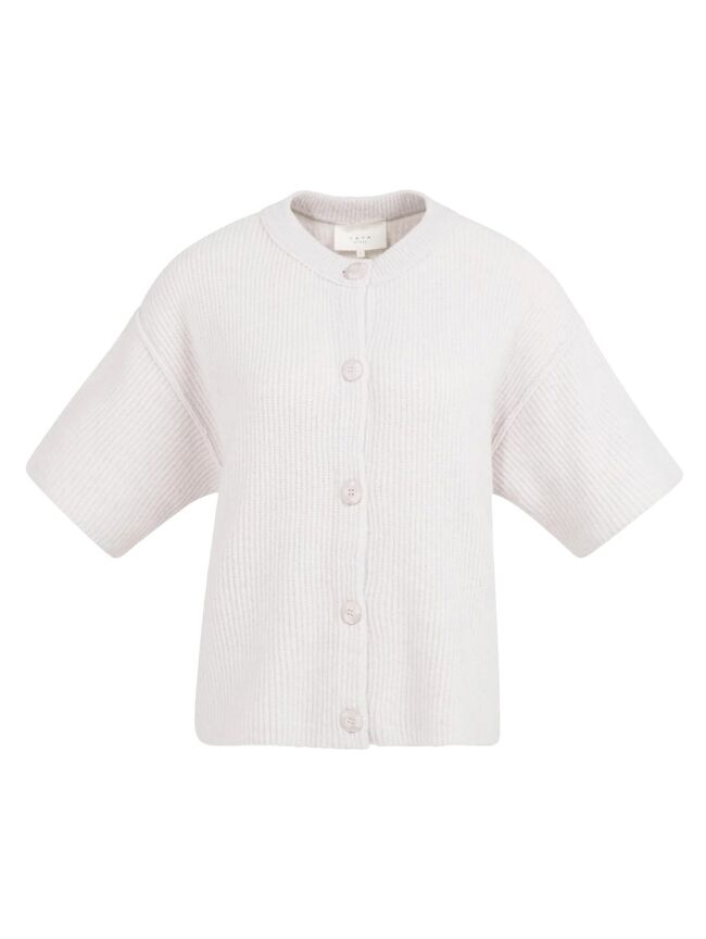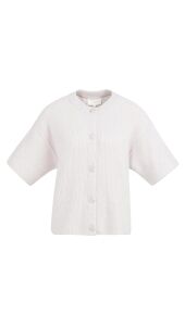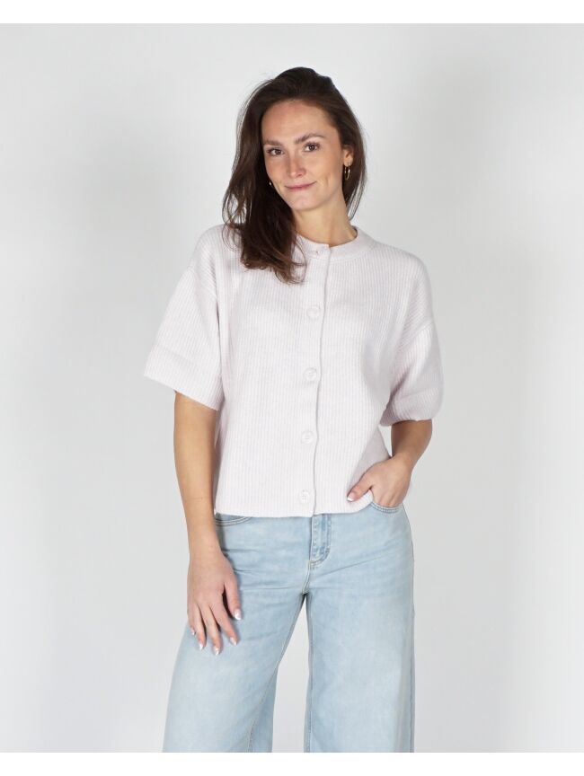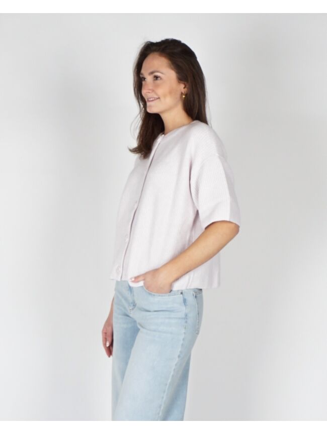 Dit comfortabele vest is vervaardigd uit een zachte ribgebreide stof en heeft een losse pasvorm. Het model is ontworpen met wijde korte mouwen, een ronde halslijn en een knoopsluiting aan de voorzijde. De minimalistische look maakt dit item perfect om gelaagd te dragen over een top of blouse.