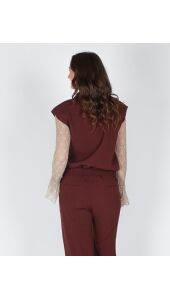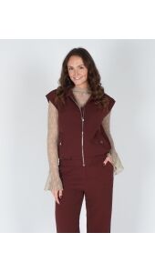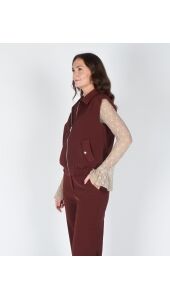 Gilet Danielle is een stijlvolle en veelzijdige toevoeging aan je garderobe. Met een klassieke kraag, ritssluiting en steekzakken combineert dit gilet moeiteloos comfort en stijl. De mouwloze snit en elastische zoom zorgen voor een moderne, flatterende pasvorm, perfect om het hele jaar door te dragen, zowel open als gesloten.