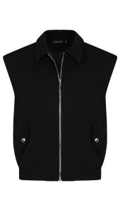 Gilet Danielle is een stijlvolle en veelzijdige toevoeging aan je garderobe. Met een klassieke kraag, ritssluiting en steekzakken combineert dit gilet moeiteloos comfort en stijl. De mouwloze snit en elastische zoom zorgen voor een moderne, flatterende pasvorm, perfect om het hele jaar door te dragen, zowel open als gesloten.
