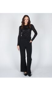 De Pantalon Solange van Ydence is een stijlvolle broek met een moderne, vrouwelijke pasvorm. De pantalon heeft een hoge taille en wijde pijpen voor een elegante look. Dankzij de rekbare band aan de achterkant zit hij extra comfortabel, zonder in te leveren op stijl. Perfect voor een dag op kantoor of een casual-chique outfit in het weekend.