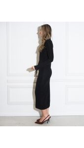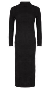 Deze zwarte jurk met een subtiel structuurtje is een echte must-have voor je collectie! Gemaakt van een comfy mix van polyester en elastaan, zit hij heerlijk stretchy en flatteert je figuur. De structuur in de stof geeft net dat beetje extra flair, perfect voor zowel een casual dagje uit als een avondje uit. Combineer met een stoere laars.