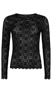 Top Loiza is een elegante basic met een vrouwelijke, romantische uitstraling. De aangesloten pasvorm en het delicate kant met bloemendessin creëren een verfijnde look, terwijl de lange mouwen en ronde halslijn zorgen voor een tijdloos silhouet. Dankzij het stretchy materiaal draagt de top heerlijk comfortabel. Perfect als statement piece of als stijlvolle laag onder een blazer of trui.
