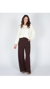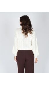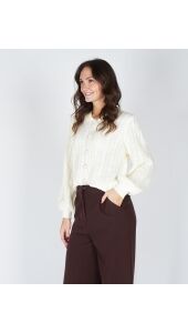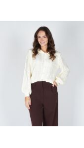 Deze gebreide top in ecru straalt tijdloze elegantie uit. De parelknopen met subtiele zilveren details geven het ontwerp een verfijnde, vrouwelijke touch. Dankzij de zachte knit en flatterende pasvorm is deze top perfect voor zowel een chique als casual look, een stijlvolle essential voor elke garderobe
