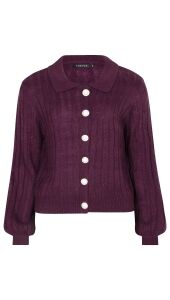 Deze gebreide top in aubergine straalt tijdloze elegantie uit. De parelknopen met subtiele zilveren details geven het ontwerp een verfijnde, vrouwelijke touch. Dankzij de zachte knit en flatterende pasvorm is deze top perfect voor zowel een chique als casual look, een stijlvolle essential voor elke garderobe.
